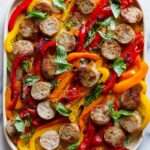 4. Serve: Serve the sausage and peppers hot straight from the oven. For added flavor, top with thinly sliced fresh basil, chopped parsley, or a sprinkle of freshly grated Parmesan cheese as desired.
