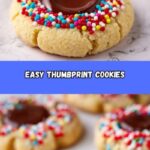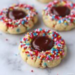 Delightfully buttery and tender Shortbread Thumbprint Cookies topped with creamy milk chocolate and crunchy sprinkles. These classic cookies feature a rich shortbread base with a smooth chocolate center, making them perfect for festive occasions or everyday treats.