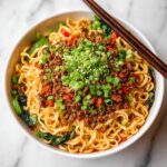Fresh garnishes like sesame seeds and cilantro are fantastic here. They add contrast and lighten the dish visually and taste-wise. You could also sprinkle extra sliced green onions or even a drizzle of chili oil if you love a little heat with your noodles.