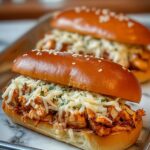 Toast your sandwich rolls or brioche buns if you prefer a little extra texture and crunch. Pile the shredded chicken generously onto each bun and sprinkle with shredded mozzarella cheese. Let the residual heat melt the cheese slightly, creating that irresistible gooey layer. Feel free to place the assembled sandwiches under a broiler for 2 to 3 minutes if you crave a golden, bubbly cheese topping.