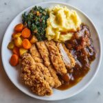 If you are craving a hearty, flavorful meal that feels like a warm embrace on a plate, the Soul Food Comfort Plate with Fried Chicken, Collard Greens, Cornbread, and Macaroni and Cheese Recipe is exactly what you need. This classic Southern spread brings together crispy, juicy fried chicken, tender collard greens simmered in rich broth, golden cornmeal cornbread, and creamy, cheesy macaroni that’s baked to perfection. Every bite bursts with comforting textures and soulful flavors, making it a perfect dish to share with family and friends on any occasion.