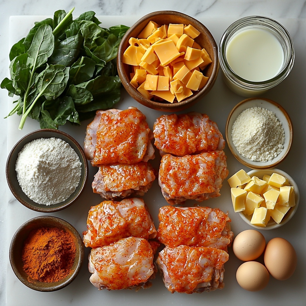 Start by marinating the chicken thighs in buttermilk for at least one hour. This tenderizes the meat and infuses just a hint of tanginess making each bite juicy and flavorful. Next, combine all-purpose flour with paprika, garlic powder, onion powder, salt, and black pepper to create a seasoned coating. Heat vegetable oil in a skillet over medium-high heat until shimmering, then dredge the marinated chicken in the flour mixture, shaking off any excess. Fry the chicken until golden brown and cooked through, about 15 to 20 minutes, turning occasionally to ensure even crisping. The result? Crispy skin giving way to succulent meat underneath.