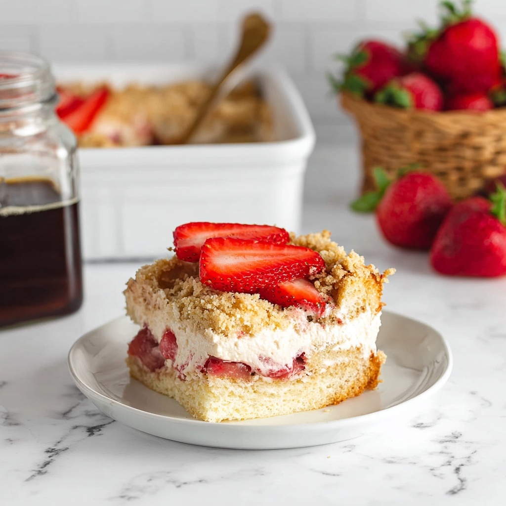 Right before serving, scatter the remaining fresh strawberries over the top of your baked casserole for a beautiful, fresh pop of color and texture that makes every bite unforgettable.