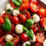Fresh basil leaves not only add vibrant green color but also an herbal brightness that complements the sweetness and acidity in the salad. Crumbled feta cheese offers a creamy, salty contrast that makes each forkful exciting. Toasted pine nuts or a sprinkle of freshly cracked black pepper are also delightful options to elevate the salad’s flavor and texture.