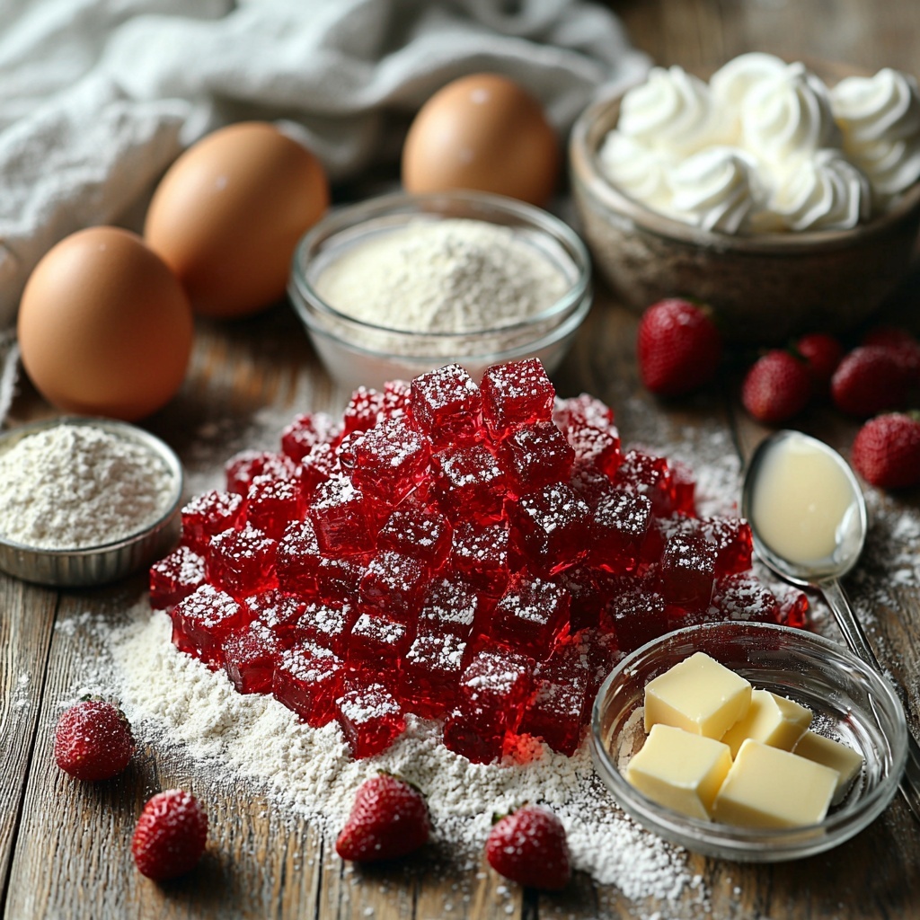 Every ingredient in this Strawberry Jello Cake Recipe plays a vital role, bringing together familiar pantry staples and that unmistakable strawberry sparkle. These essentials work harmoniously to create a cake that’s moist, flavorful, and topped with a luscious jello layer that wows.