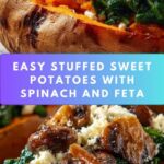Delicious and nutritious stuffed sweet potatoes filled with a savory mixture of sautéed spinach, mushrooms, onions, garlic, and topped with crumbled feta cheese. This wholesome meal is perfect for a vegetarian lunch or dinner and combines the natural sweetness of baked sweet potatoes with the rich flavors of sautéed vegetables and tangy feta.