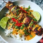 This Sweet Chili Chicken Bowl with Coconut Lime Drizzle combines juicy, caramelized chicken thighs marinated in a flavorful sweet chili and lime sauce, served atop fragrant jasmine rice and finished with a creamy, tangy coconut lime drizzle. Garnished with fresh cilantro and lime wedges, this vibrant dish offers a perfect balance of sweet, savory, and citrusy notes, ideal for a quick and satisfying weeknight meal.
