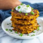 - Serve: Serve the hash browns immediately, optionally garnished with chopped chives and a dollop of sour cream. Enjoy your crispy, flavorful sweet potato hash browns!