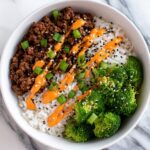 - Serve: Spoon the teriyaki ground beef and broccoli mixture over warmed rice or cauliflower rice. Garnish with toasted sesame seeds and thinly sliced scallions. Serve immediately, with the prepared spicy mayo sauce on the side for added flavor.