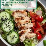 A vibrant and flavorful Thai Chicken Salad featuring tender skillet-cooked chicken breasts tossed with fresh mixed greens, crunchy vegetables, and a tangy, sweet, and spicy homemade dressing. This refreshing salad combines crisp lettuce, carrots, red cabbage, bell pepper, and cucumber with an aromatic cilantro and crunchy peanuts topping, making it a perfect light meal or appetizer with authentic Southeast Asian flavors.