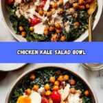 This Chicken Kale Salad combines tender shredded chicken, nutrient-packed Tuscan kale, and a zesty tahini lemon dressing. Roasted spiced chickpeas add a delightful crunch, while soft boiled eggs and parmesan cheese bring richness to every bite. Perfect for a healthy lunch or light dinner, this salad balances vibrant flavors and textures with wholesome ingredients.
