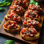Try serving your bruschetta on a rustic wooden board for a charming, inviting look, or arrange each slice in a circle on a large plate for parties. For a fun twist, use mini baguette slices or even crackers when you want bite-sized hors d’oeuvres with all that classic flavor.