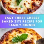 This Three Cheese Baked Ziti recipe is a comforting and delicious Italian-American classic, featuring perfectly cooked ziti pasta baked with a luscious blend of ricotta, mozzarella, and Parmesan cheeses, combined with flavorful marinara sauce and aromatic Italian seasonings. It’s an ultimate baked pasta dish that’s creamy, cheesy, and perfect for family dinners or gatherings.