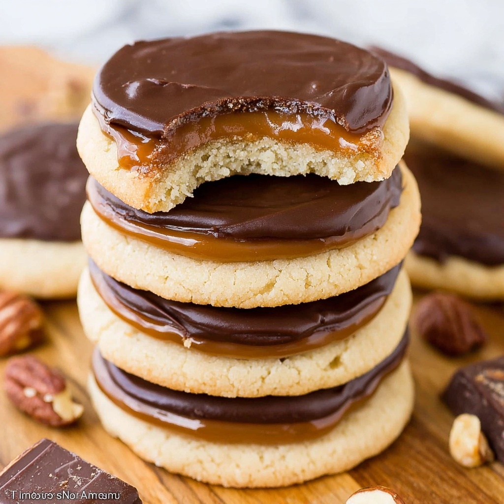 - Allow caramel and chocolate layers to fully set before stacking or storing cookies.