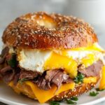 This Ultimate Steak Egg and Cheese Bagel recipe combines tender, thinly sliced steak, perfectly cooked eggs, and melted cheese sandwiched between toasted bagels for a hearty and flavorful breakfast or brunch option. Optional add-ins like sautéed onions, mushrooms, or fresh spinach add extra layers of taste and texture, making this a satisfying and protein-rich sandwich perfect for any morning craving.